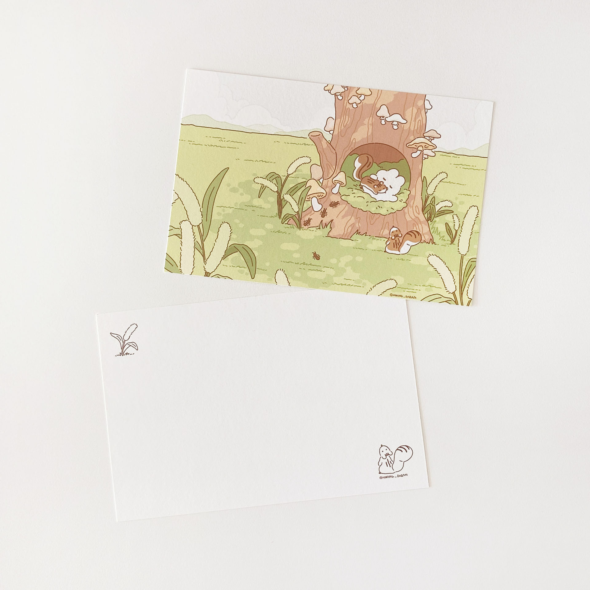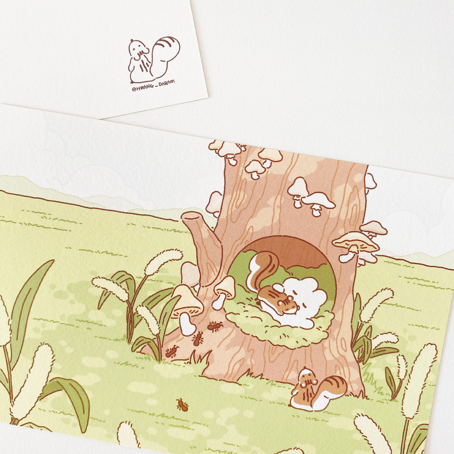 다람쥐와 쮸의 모습을 일러스트 엽서에 담았습니다. :)