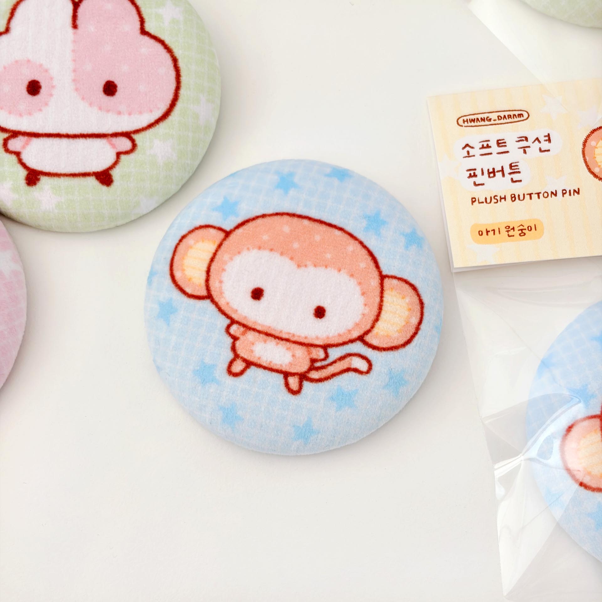 03. 아기 원숭이 쿠션 핀뱃지 (하늘배경)